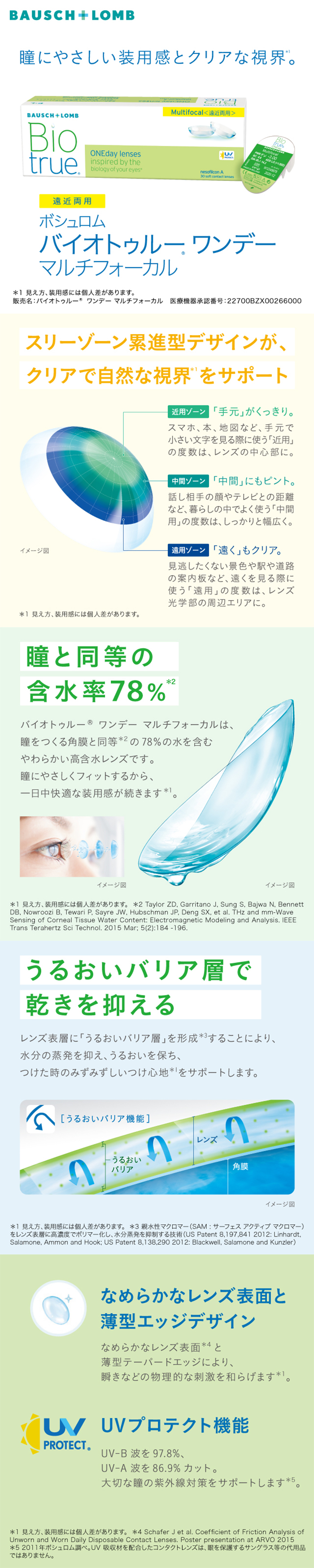 #ワンデー #バイオトゥルー #遠近両用 #高含水 #非イオン性 #汚れにくい #遠視 #老眼 #1day