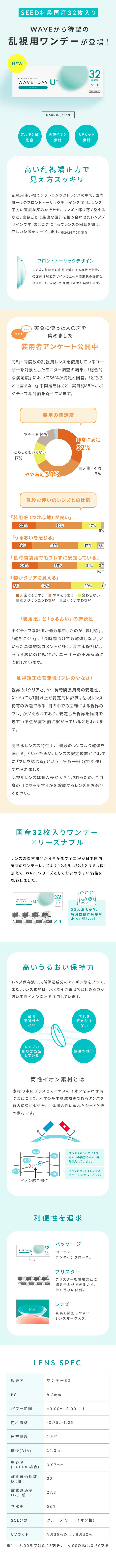SEED社製造による国産1日使い捨てレンズ(32枚入り)WAVEから乱視用が登場!